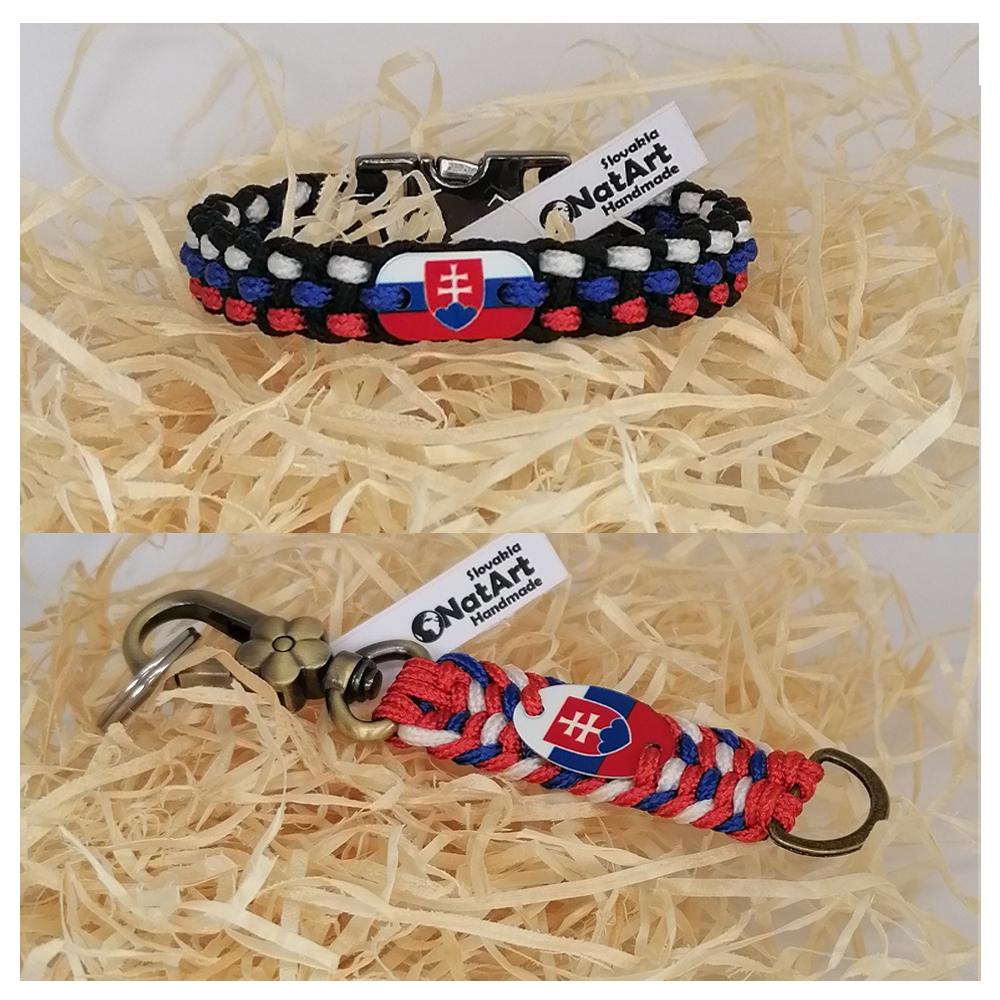 Náramok a kľúčenka z padákovej šnúry (paracordu) s kovovým zapínaním.