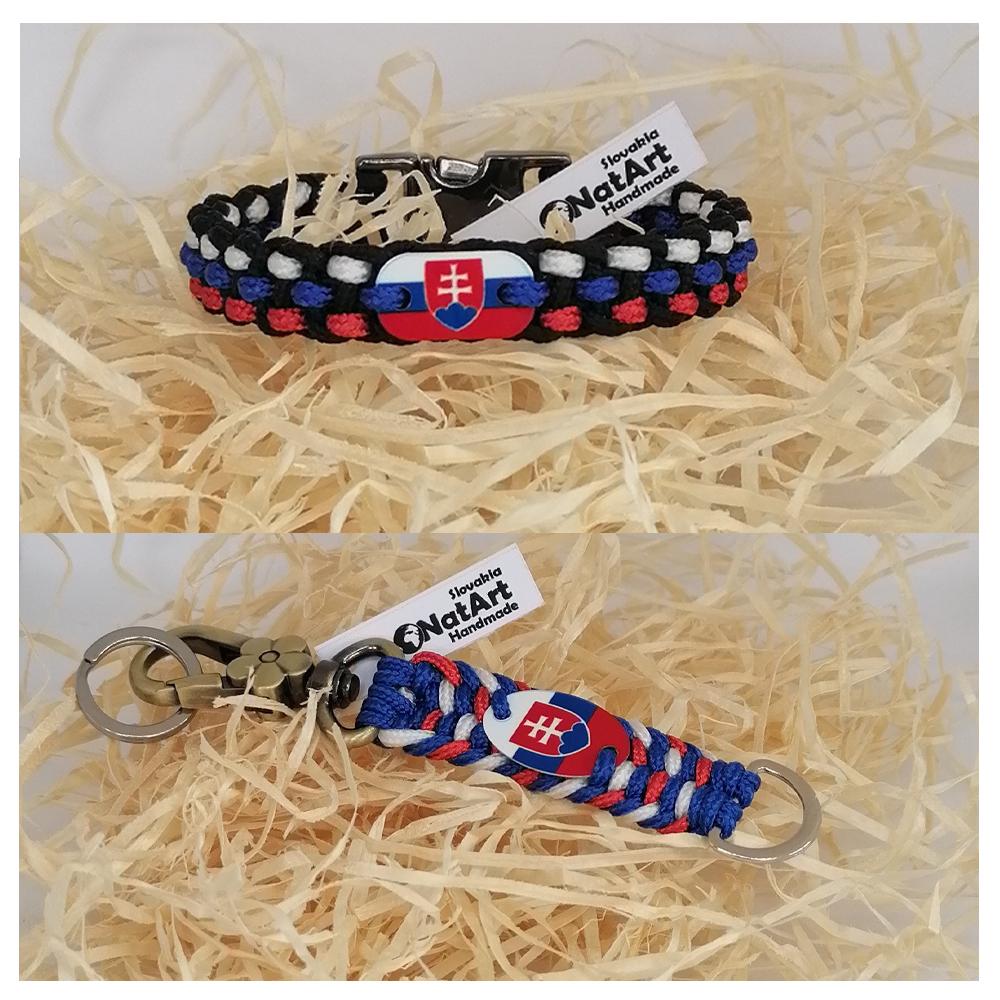 Náramok a kľúčenka z padákovej šnúry (paracordu) s kovovým zapínaním.